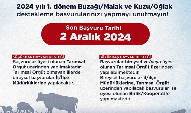 Büyükbaş ve Küçük Baş Hayvan Destekleri İçin Son Tarih 2 Aralık.Nasıl ve Nereye Başvurulacak Bireysel ve Üyesi olunan Tarınsal örgüt üzerinden İl ve İlçe Müdürlüğüne Tarımsal Örgüt üzerinden Yapılacak.