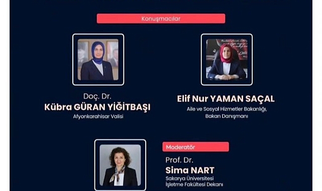 Sakarya Üniversitesinde, “Türkiye Yüzyılında Yönetimde Kadın Liderler” konuşulacak.Sakarya Üniversitesi Toplumsal Katkı ve Sürdürülebilirlik Koordinatörlüğü, Kadın Araştırmaları Uygulama ve Araştırma Merkezi, Kariyer Geliştirme Koordinatörlüğü iş birliğiyle düzenlenecek söyleşinin konukları, Afyonkarahisar Valisi Doç. Dr. Kübra Güran Yiğitbaşı ve Aile ve Sosyal Hizmetler Bakanlığı Bakan Danışmanı Elif Nur Yaman Saçal, moderatör ise İşletme Fakültesi Dekanı Prof. Dr. Sima Nart olacak.Söyleşi 19 Aralık Perşembe günü, saat 14.00'te Sakarya Üniversitesi Hukuk Fakültesi, Sabahattin Zaim Konferans Salonunda gerçekleşecek.