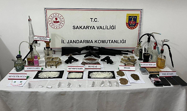 Sakarya İl J.K.lığı ekiplerince Erenler İlçesinde Uyuşturucu İle Mücadele ve Silah Kaçakçılığının önlenmesi kapsamında altı farklı adreste icra edilen eş zamanlı operasyonda M.Ç.(E/43), E.G.(K/26), K.A.(K/34) ve Ç.Ü.(E/33) isimli şahısların ikametgâhlarında ve üstlerinde yapılan aramada; -(220) Gram Metamfetamin -(200) Gram Sentetik Kannabinoid/Bonzai -(30) Gram Skunk -(40) Gram Metamfetamin (10 adet alüminyum folyoya sarılmış satışa hazır vaziyette) -(30) Adet Sentetik Ecza -(100) Ml Sıvı Amfetamin -(8) Adet Uyuşturucu Kullanma Aparatı -(2) Adet Hassas Terazi -(2) Adet 7.65 mm Çapında Pietro Beratta İbareli Ruhsatsız Tabanca -(1) Adet 9 mm Çapında HS Produkt CROTIA İbareli Ruhsatsız Tabanca -(727) Adet 9 mm Tabanca Fişeği -(1) Adet Yarı Otomatik Magnum Marka Av Tüfeği -(6) Adet Cep Telefonu ele geçirilmiş olup gözaltına alınan M.Ç.(E/43), E.G.(K/26), K.A.(K/34) ve Ç.Ü.(E/33) isimli şahıslar hakkında adli işlemlere başlanılmıştır. Adli işlemlerinin ardından K.A.(K/34) serbest bırakıldı. Ç.Ü.(E/33) ise adli kontrol şartıyla serbest bırakılırken M.Ç.(E/43) ve E.G.(K/26) isimli şahıslar da çıkarıldıkları mahkemece tutuklanarak cezaevine teslim edildi.