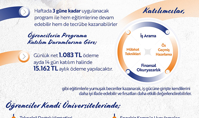 Sakarya Üniversitesi ile Sakarya İŞKUR iş birliğinde hayata geçirilecek program kapsamında, gençlere hem iş gücü deneyimi kazandırılacak hem de gelir desteği sağlanacak. Proje kapsamında Türkiye İş Kurumu tarafından Sakarya Üniversitesi'nde okuyan öğrenciler için 1302 kontenjan ayrıldı.