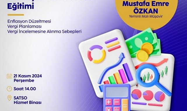 SATSO Akademi eğitimleri kapsamında 21 Kasım 2024 Perşembe günü saat 14.00'te Enflasyon Muhasebesi Eğitimi Odamızda eğitmen Yeminli Mali Müşavir Sn. Mustafa Emre ÖZKAN'ın sunumuyla gerçekleştirilecektir. Eğitim genel katılıma açık olup, katılım ücretsizdir. Bilgilerinize sunarız.İçerik:Enflasyon DüzeltmesiVergi PlanlamasıVergi İncelemesine Alınma Sebepleri