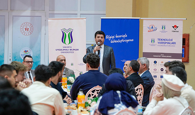 Sakarya Uygulamalı Bilimler Üniversitesi (SUBÜ) Sağlık Kültür ve Spor Daire Başkanlığı koordinasyonunda; Teknoloji Yarışmaları Koordinatörlüğü öğrencileri, uluslararası öğrenciler ve öğrenci toplulukları temsilcilerine yönelik iftar organizasyonu düzenlendi. Spor Bilimleri Fakültesi’nde düzenlenen 500 kişilik organizasyona; SUBÜ Rektörü Prof. Dr. Mehmet Sarıbıyık, Rektör Yardımcısı Prof. Dr. Oğuz Türkay, Genel Sekreter Doç. Dr. Gökhan Ergen, Dil Eğitim-Öğretim Uygulama ve Araştırma Merkezi (SADEM) Müdürü Doç. Dr. Serhat Küçük, Teknoloji Yarışmaları Koordinatörü Doç. Dr. Ali Furkan Kamanlı, Sağlık Kültür ve Spor Daire Başkanı Dr. Orhan Yılmaz ile akademisyenler katıldı. Tek tek masaları dolaşarak öğrencilerle selamlaşan Rektör Sarıbıyık, her zaman olduğu gibi Ramazan ayında da öğrencileriyle bir arada olmaktan mutluluk duyduklarını belirti. Sarıbıyık, Teknoloji Yarışmaları Koordinatörlüğü kurulduğundan bu yana Teknofest’te 25, Sağlıkfest’te 2 ve Sosyalfest’te 1 ödül aldıklarını hatırlatırken; 101 ülkeden 3963 uluslararası öğrenciyi kültür ve ticaret elçileri olarak yetiştirdiklerini vurguladı. Ayrıca aktif olarak faaliyet gösterdikleri ve gerçekleştirdikleri etkinliklerle üniversitenin kültürel ve sportif zenginliğine katkı sundukları için öğrenci topluluklarına teşekkür ederek, 69 olan öğrenci topluluğu sayısını öğrencilerden gelen talepler doğrultusunda her geçen gün artıracakları bilgisini paylaştı.