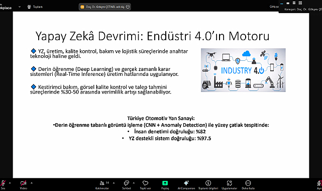 SATSO Yapay Zeka ve Veri Bilimi Komisyonu organizasyonuyla gerçekleşen eğitimde eğitmenler Doç. Dr. Gökçen Çetinel’in sunumu ve anlatımıyla, yapay zekânın temelleri ve uygulama alanları ve araçlar, uygulamalar ve yol haritası ana konu başlıklarıyla, YZ ve dijital dönüşüm tanıtımı, elektriğe geçiş benzetmesi, evrimsel süreç, neden YZ? YZ’nin temel avantajları – daha az kişiyle daha çok iş, hız ve kalite, sanayide verimliliği arttıran akıllı dijital asistanlar, AI Agent nedir? düşük maliyetli YZ araçları konu başlıkları altında bilgiler paylaşıldı ve merak edilenler cevaplandırıldı.Katılımcı SATSO Üyelerine bilgiler paylaşan Doç. Dr. Çetinel, şunları dile getirdi: “Sanayi dünyası yapay zekayla köklü bir dönüşüm yaşıyor. Üretimden kalite kontrole, stok yönetiminden müşteri hizmetlerine kadar birçok alanda yapay zeka (YZ) teknolojileri verimliliği artırıyor, maliyetleri düşürüyor.Endüstri 4.0’ın temel yapıtaşlarından biri haline gelen yapay zekâ, artık sanayide sadece bir destek teknolojisi değil, iş süreçlerinin merkezine yerleşmiş durumda. Artık sadece üretmek yeterli değil; veriye dayalı akıllı üretim, öngörüye dayalı karar alma ve hızlı tepki verme yetkinliği şirketlerin rekabet gücünü belirliyor.Derin öğrenme teknikleriyle desteklenen bu sistemler, fabrikalarda verimliliği önemli ölçüde artırıyor. Görüntü işleme teknolojileri sayesinde üretim hatlarında ürünler artık insan gözü yerine kameralar ve bilgisayarlarla denetleniyor. Bu yöntem, insan kaynaklı hata oranlarını %44 oranında azaltırken kalite kontrol süreçlerini de ürün daha oluşmadan başlatma imkânı sağlıyor.Yapay zeka, üretim kadar ticari süreçlerde de etkin bir rol üstleniyor. Satış tahminleri, dinamik fiyatlandırma ve stok yönetimi gibi kritik süreçlerde YZ sistemleri, firmalara zaman ve maliyet avantajı sağlıyor. Akıllı sistemler sayesinde stoklar etkin şekilde yönetilebiliyor, taleplere göre üretim planlaması yapılabiliyor.Bu dönüşüm sayesinde firmalar aynı kaynaklarla daha çok iş yapabilir hale geliyor. Dijitalleşmenin bu yeni dalgası, yalnızca büyük işletmeler için değil, KOBİ’ler için de ciddi fırsatlar barındırıyor.” dedi.